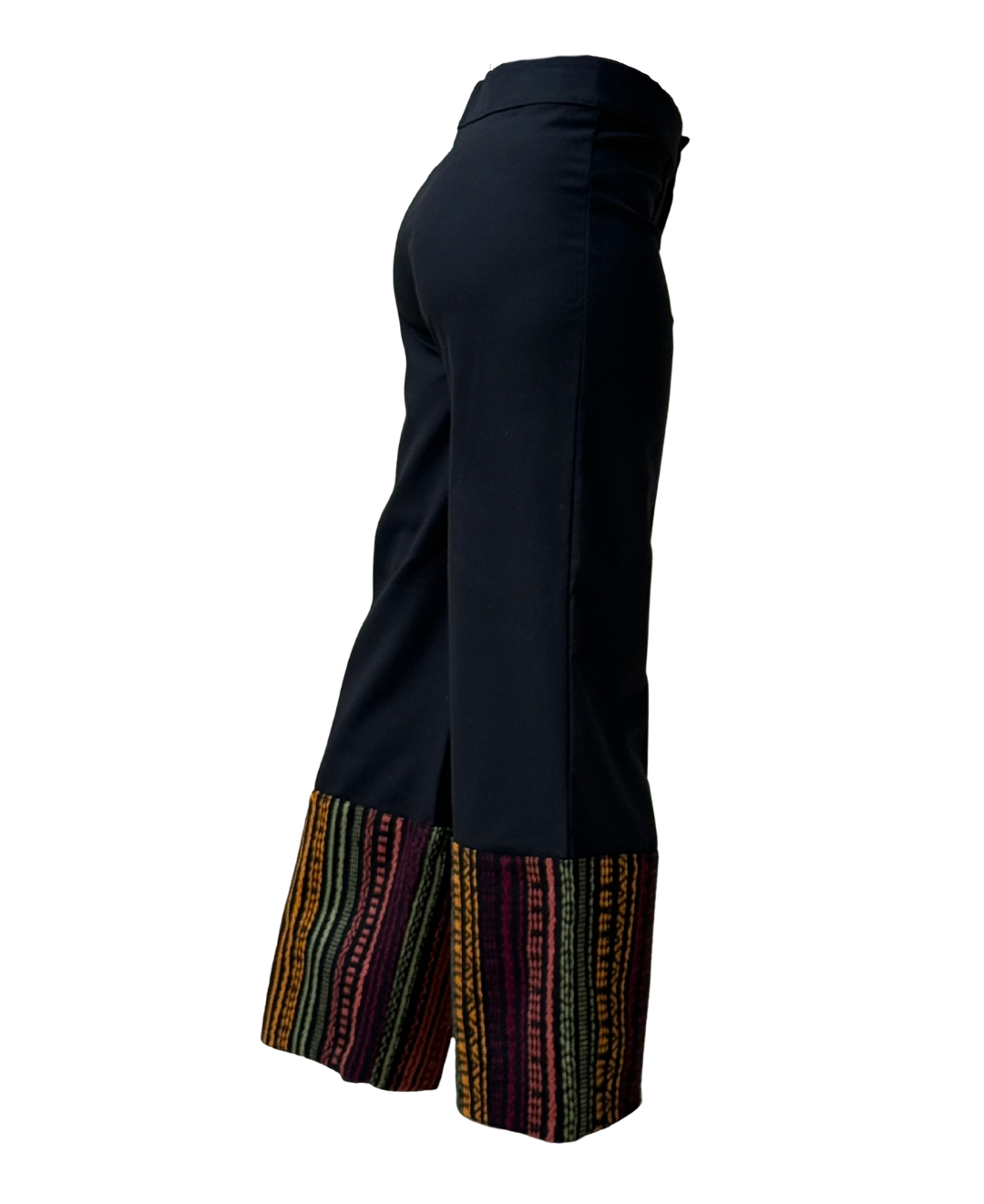 Pantalón recto con franja de tejido en la parte inferior.