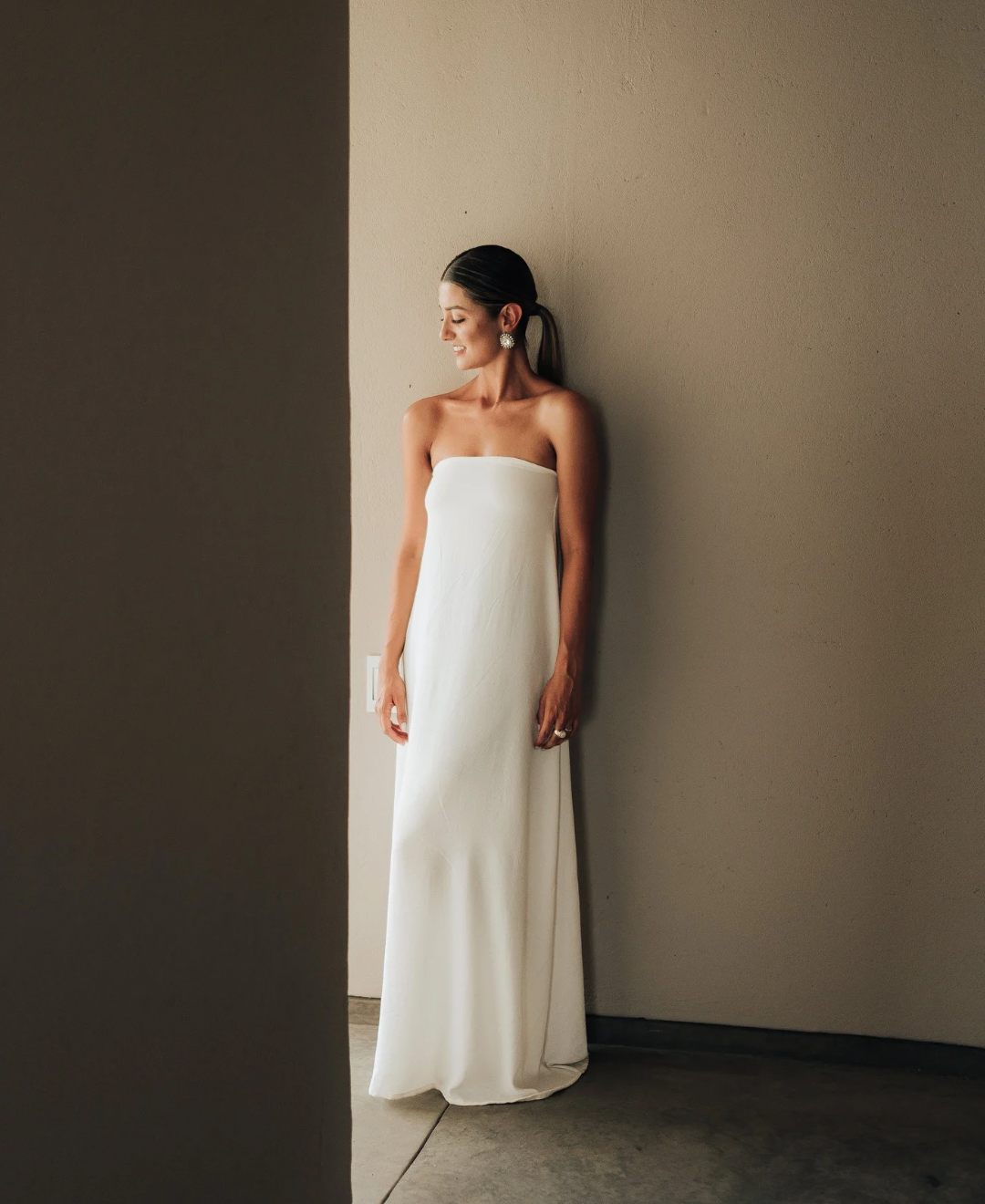 Vestido straple largo.