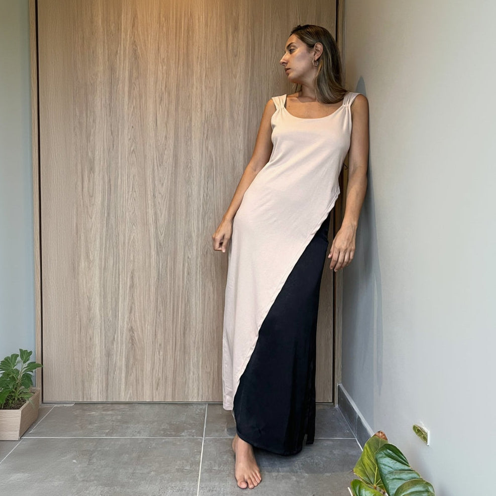 Top de diseño asimétrico y caída fluida, confeccionado en algodón 100% suave y respirable. Su silueta limpia y versátil acompaña el movimiento con naturalidad, convirtiéndolo en una pieza esencial para el día a día o para elevar un look con sencillez. Atemporal, cómodo y pensado para usarse una y otra vez.